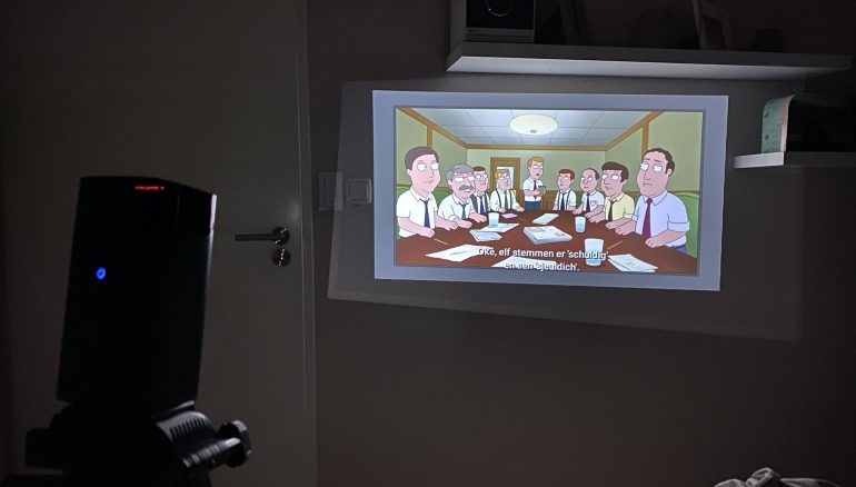Er is overigens nog een screen mirror-functie aanwezig, via Apple AirPlay voor iOS-gebruikers en Google Cast voor Android-gebruikers. Heel leuk, maar hiervoor geldt wel de beperking dat beschermde content niet kan worden gestreamd. Dus een video van bijvoorbeeld Apple TV+ weergeven via de projector behoort niet tot de mogelijkheden.