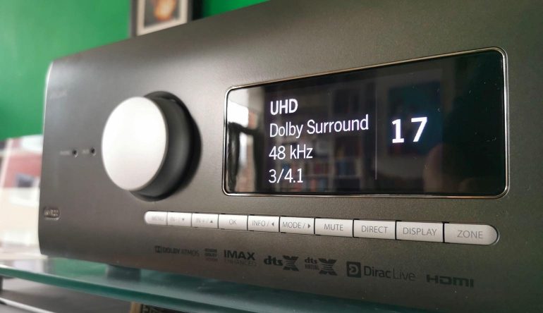 De AVR20 kunt je inzetten voor een 5.2.2-opstelling of 7.2, of 5.1 met een tweede zone. Maar meer is mogelijk: de surroundprocessing gaat immers tot 9.1.6. Ondersteuning is er voor DTS:X en Dolby Atmos, naast IMAX Enhanced. Er is ook DTS Virtual:X present als je een hoogte-effect wil simuleren met je gewone 5.1-surroundopstelling. Deze codec maakt niet altijd veel indruk, maar tijdens het testen van de AVR20 hebben we het toch een paar geprobeerd om te realiseren dat het wel klopte. Misschien ligt dat wel aan de goede Dirac-afregeling.