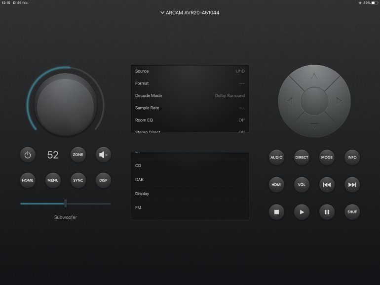 Ten slotte behoudt de AVR20 de oude Music Life-app van Arcam. Hiermee kun je eigen bestanden streamen via UPnP, bijvoorbeeld vanaf een NAS. De app geeft ook toegang tot verschillende streamingdiensten (Qobuz, Tidal, Deezer en anderen), internetradio en podcasts. Er is nog een andere app, Arcam Control, die functioneert als een vervanger voor de fysieke remote. Tijdens het testen was de Control-app echter nog niet helemaal up to date. Volume regelen en ingangen kiezen op de AVR20 kon al, maar de getoonde informatie over de content die we bekeken klopte niet. Komt snel in orde, belooft Arcam.