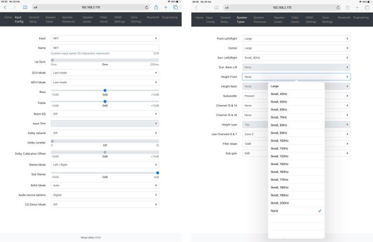 De webinterface heeft ook zijn voordelen. Het is bijvoorbeeld heel eenvoudig om per ingang alles in te stellen zoals je wil, zoals de gewenste geluidsmodus als je 2-channel luistert of welke correctie er gebruikt wordt.