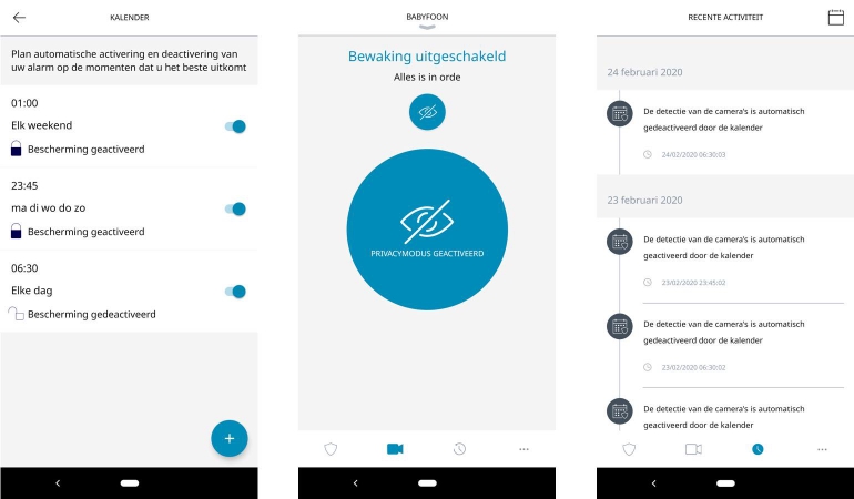 Een extra goede eigenschap is de schuif die voor de lens schuift als er personen aanwezig zijn. Zo wordt de privacy optimaal gegarandeerd. Dit is fijn voor bezoekers die mogelijk erg op hun privacy gesteld zijn. De mogelijkheid om de schuif automatisch te laten werken gaat via GPS locatie van de telefoon waarop de app is geïnstalleerd. Het is mogelijk meerdere gezinsleden toe te voegen op deze app. Anderzijds kan er in de app handmatig op ‘’activeren privacy’’ worden geklikt en zal ook de schuif voor de lens zakken.