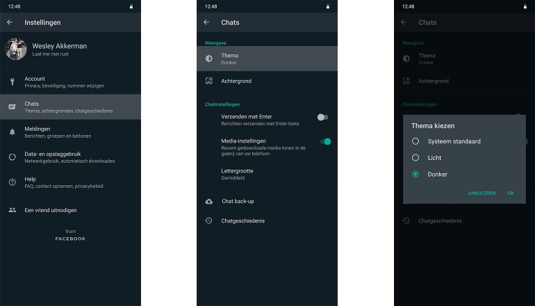 Donkere modus voor WhatsApp