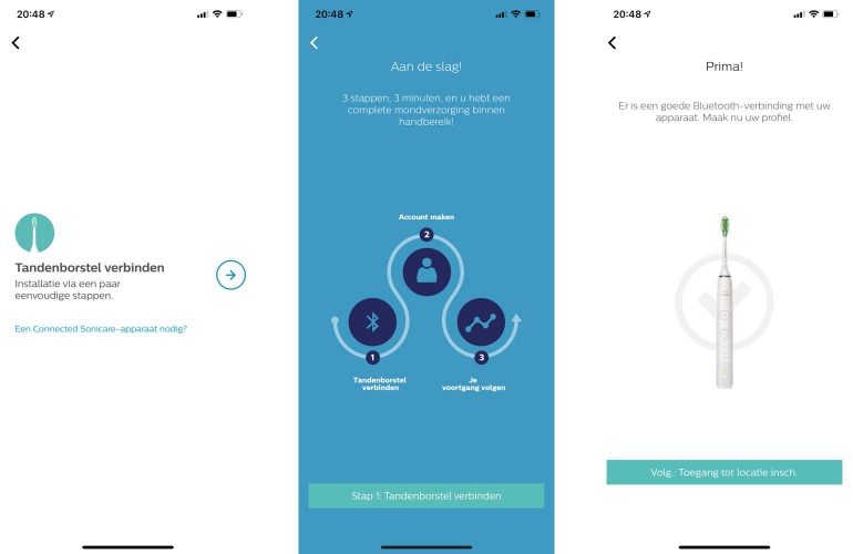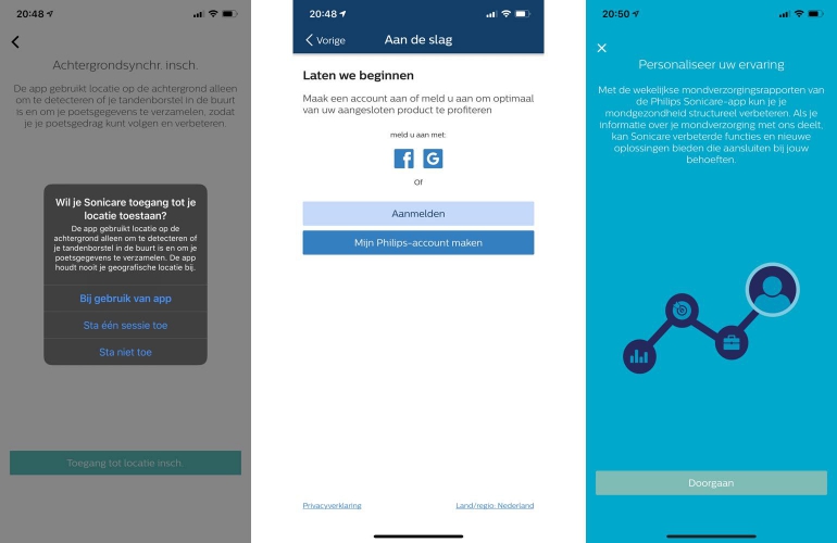 Een klein minpuntje is dat het verplicht is een account aan te maken en je wordt ook grotendeels verplicht informatie met Philips te delen om alle functies te kunnen gebruiken. Dat is niet meer echt van deze tijd natuurlijk. Ook zonder account zou de tandenborstel prima bruikbaar moeten zijn. Ook een puntje van kritiek is dat de locatievoorzieningen voor de app altijd aan moeten staan. De tandenborstel en app proberen elkaar namelijk meerdere malen per dag te vinden om te synchroniseren. Volgens Philips werkt het alleen op deze manier goed, maar ons lijkt dat je ook zonder deze instelling prima een verbinding tussen smartphone en app kunt leggen om te synchroniseren.