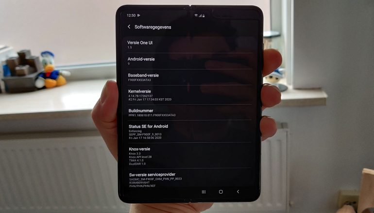 De Samsung Galaxy Fold draait op moment van schrijven op Android 9, met daaroverheen de Android-skin van Samsung. Het gaat om OneUI 1.5. Dat is niet de nieuwste versie van de schil en ook niet de nieuwste versie van het Android-systeem, dus we hopen dat Samsung die update snel klaarstoomt. Het toestel mag rekenen op twee grote Android-upgrades, maar wanneer Android 10 verschijnt is niet bekend. Verder zien we dat de smartphone nu de beveiligingsupdate van 1 februari 2020 heeft. Dat is dus wel prima.
