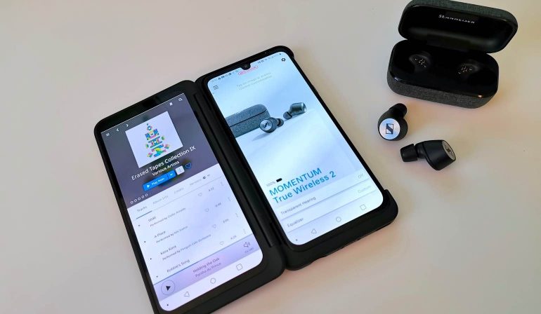 We hebben de eerste generatie Momentum True Wireless nog bij de hand en kunnen dus meteen vergelijken met de geüpdatete versie. Met de oortjes verbonden met een LG G8X (die aptX ondersteunt), doorlopen we onze grote playlists met vaste testtracks in Roon. Eerst checken we bij de instellingen of de Momentum True Wireless 2 inderdaad de belofte Bluetooth-codecs aankan. En inderdaad: SBC, AAC en aptX zijn mogelijk. De LG kiest automatisch voor die laatste, een lossy codec die wel een hoge kwaliteit levert. Het is een soort kwaliteitslabel dat er minstens een bepaalde kwaliteit wordt geleverd. Een Bluetooth-codec kan uiteraard een slecht bronbestand of stream niet goed maken. Daarom raden we je aan om naar lossless bestanden te luisteren of – als dat niet mogelijk is – naar lossy bestanden met de hoogst mogelijke bitrate. In de apps van diensten als Spotify kies je daarom het best voor een hoge kwaliteit. De Momentum True Wireless 2 ondersteunt ook de low latency-variant van aptX, waardoor we gerust naar een aflevering van seizoen twee van ‘Altered Carbon’ op Netflix konden kijken zonder een discrepantie of lag tussen gesproken dialogen en lipbewegingen te merken.