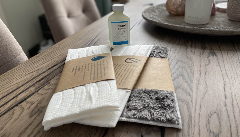 De Braava Jet M6 komt met vier reinigingspads, waarvan er twee voor hergebruik zijn (droog en nat). Extra pads kosten 30 euro per twee stuks. En daarbij raadt iRobot aan het schoonmaakmiddel van het bedrijf zelf te gebruiken, met een prijs van 15 euro per flesje. Natuurlijk hebben wij ook even standaard schoonmaakmiddel geprobeerd en dat gaf geen problemen, maar volgens iRobot is dat op eigen risico.