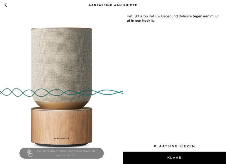 De kalibratiefunctie is niet moeilijk te gebruiken. Het speelt een testtoon van een drietal seconden af om te bepalen wat de situatie juist is en welke aanpassingen nodig zijn. Levert het iets op? Dat ontdek je direct als je wat muziek afspeelt, want in de app kun je door lang te drukken op de speaker de correctie in- en uitschakelen. Dat maakt het vergelijken eenvoudig. Het belangrijkste wat de Balance-kamerkalibratie probeert te ontdekken is of de speaker dicht bij een muur staat of helemaal vrij. Die plaatsing ten opzichte van een wand beïnvloedt namelijk de sterkte van de bassen. We kregen ook de indruk dat de speaker in de twee kamers waarin we hem geplaatst hebben ook een kamermode (waarbij een bepaalde basfrequentie versterkt wordt door de vorm van de kamer) wegwerkt. Dat is een nuttige iets dat je muziek meteen gedetailleerder en vooral het laag minder wollig maakt.