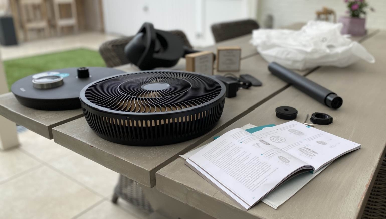 De handleiding is duidelijk en snel te doorlopen, al ontbreekt het aan een uitleg over de accu en ook het uiteindelijke gebruik zou iets duidelijker omschreven mogen worden. Met name de bediening van de knop op de voet van de ventilator is even wennen en wordt niet duidelijk uitgelegd, en ook het koppelen van de ventilator met de app wordt te summier omschreven. Gelukkig zijn er online meerdere beschrijvingen en video’s te vinden zodat je snel weet hoe de ventilator te gebruiken is.