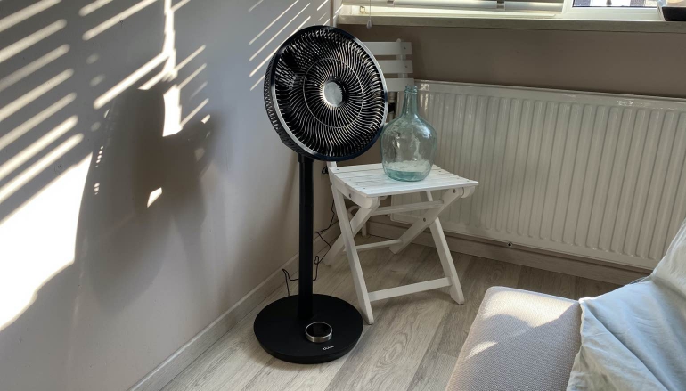 Er komt een compacte en fraai vormgegeven afstandsbediening bij die achterop de ventilator geplakt kan worden dankzij een magneet. Zo is de kans klein dat je de remote kwijtraakt. Enig nadeeltje van de remote is dat deze middels een infraroodontvanger in de voet werkt en je de ventilator dus niet vanuit elke hoek kunt bedienen.