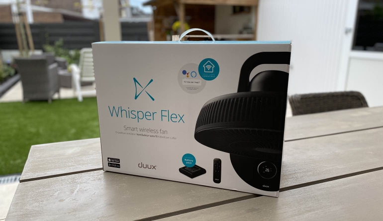 De Whisper Flex Smart is een slimme ventilator van het Nederlandse bedrijf Duux. De ventilator kan met of zonder Battery Pack gekocht worden. Deze accessoire maakt het mogelijk de ventilator ook zonder vaste voeding te gebruiken en dus mobiel in te zetten. De Whisper Flex Smart is in hoogte verstelbaar, biedt verschillende ventilatiestanden, kan verticaal en horizontaal draaien en kan bediend worden middels de meegeleverde afstandsbediening, de knop op de ventilator zelf en de Duux-app voor Android en iOS.