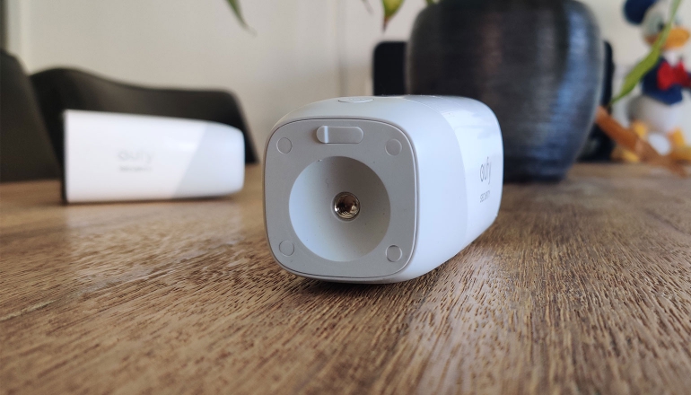 Qua design lijkt de Eufycam ook nog eens ontzettend op het eerste model. Achterop zit een opening voor een schroef. In de doos zitten twee soorten middel voor de bevestiging: een magnetische dome en een kleine basis waarmee je hem kunt ophangen. In beide gevallen heb je genoeg ruimte om te variëren met de positie van de camera, zodat je alles vanuit een goede hoek kunt opnemen. Verder zijn er vier leds aanwezig voor nachtvisie (de vorige had er twee) en zitten onderop zowel de speaker als de microfoon.