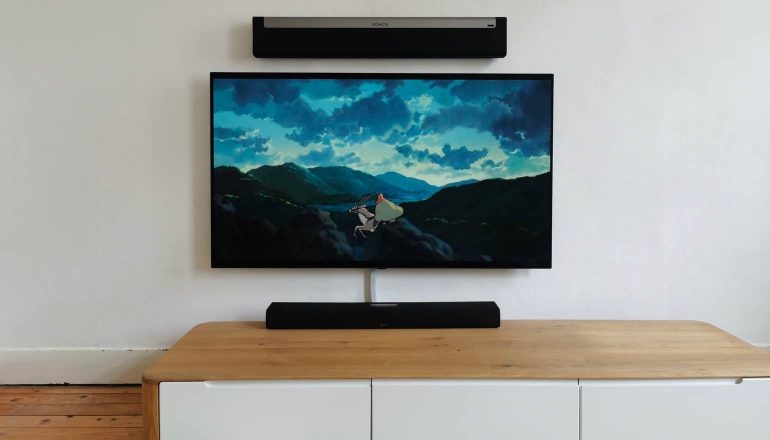 Het maakt indruk, eerlijk gezegd ook wel omdat de geluidseffecten vergeleken met de dialogen soms luider zijn. Tijdens latere kijksessies zitten we wel daarom vaker te spelen met de bascontrole en de geluidsmodi om iets meer balans te vinden. Het is niet dat de bassen wollig of lang doorklinken zodat de strakke weergave van geluidseffecten wordt tegengewerkt, iets dat je bij veel soundbars tegenkomt (ook met losse subwoofer). We merken ook een veel betere, evenwichtigere weergave nadat we het tv-meubel vrijmaakte en ons paneel aan de linkerzijde neerzette (en opnieuw kalibreerden).