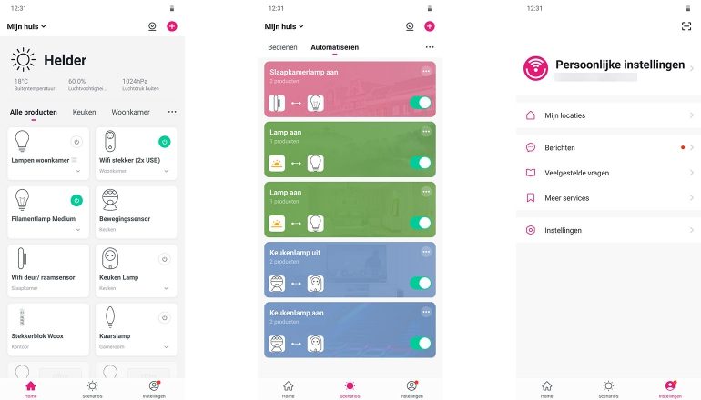 Het aanmaken van geautomatiseerde processen (Scenario’s genoemd in de app) werkt zoals je dat ook gewend bent van diensten als IFTTT, Yonomi en soortgelijke, ingebouwde mogelijkheden. Je kiest eerst een conditie (de trigger), zoals een handmatige bediening, het weer (waaronder zonsondergang en -opgang), de tijd of een productstatus. Vervolgens kies je de activiteit (de uitkomst). Dat kan het bedienen van een product zijn, maar ook het activeren van een scenario, versturen van een notificatie of activeren van een vertraging.