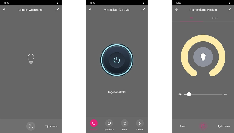 Software is een belangrijk onderdeel van de ervaring van het platform en in veel gevallen het middel om je te onderscheiden. Nu doet Smart Me dat al qua hardware door bijvoorbeeld die filamentlampen aan te bieden, maar we zien ook softwarefuncties die we bijvoorbeeld niet bij Woox tegengekomen zijn. Zo is het bijvoorbeeld mogelijk producten te groeperen, waardoor ze met één druk op de knop bediend kunnen worden. Denk dan aan je lampen in de woonkamer of op één verdieping: met een simpele tap op het touchscreen, gaan ze allemaal aan.