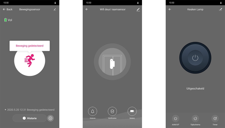 De losse bewegingssensor werkt zonder deuren of ramen, natuurlijk. Je plaats hem op een plek waar het belangrijk is dat je beweging meet. Dit kan voor beveiligingsdoeleinden zijn, maar ook bijvoorbeeld om ergens snel een lamp aan te laten springen. Dat laatste hebben we ingesteld voor de keuken. Helaas is het zo dat het ruim zes seconden duurt voordat de lamp aanspringt met dit systeem. Soms ging de lamp pas aan wanneer we uit de keuken waren. Dat heeft dus weinig nut, maar gelukkig zijn er ook andere mogelijkheden beschikbaar.