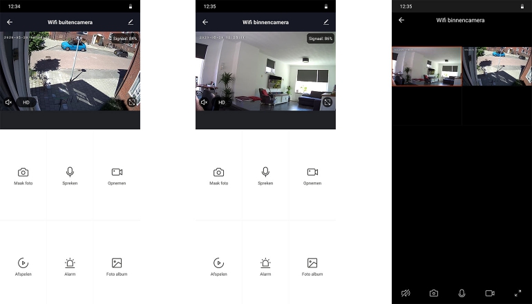 Een opvallend aspect is de manier waarop de camera met de app omgaat. Wanneer je namelijk in je eigen overzicht de camera opent en dus één camera per keer bekijkt, dan krijg je toegang tot een veel betere beeldkwaliteit. Dit geldt voor de binnen- en buitencamera. De beelden ogen hier stukken scherpen, meer kleurrijk en gedetailleerder dan wanneer je het overzicht (met al je camera’s in en om je huis) bekijkt. Waarom dit precies zo is, is ons ook een raadsel. Maar dat maakt het overzichtsscherm in elk geval minder interessant.