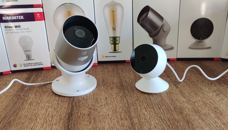 De twee camera’s van Marmitek Smart Me hebben eenzelfde basis. Ze nemen video’s op in 1080p en beschikken over bewegingsdetectie, twee-wegaudio, nachtzicht en een sleuf voor een micro-sd-kaart. Je kunt video’s en foto’s opslaan op je mobiele apparaat, maar ook op een micro-sd-kaart (later komt er nog cloudopslag, die niet verplicht is). Het nachtzicht van binnencamera View ME kan tot tien meter in het donker zien, terwijl buitencamera View MO tot vijftien meter kan kijken. Daarnaast is die camera gelukkig spatwaterdicht.