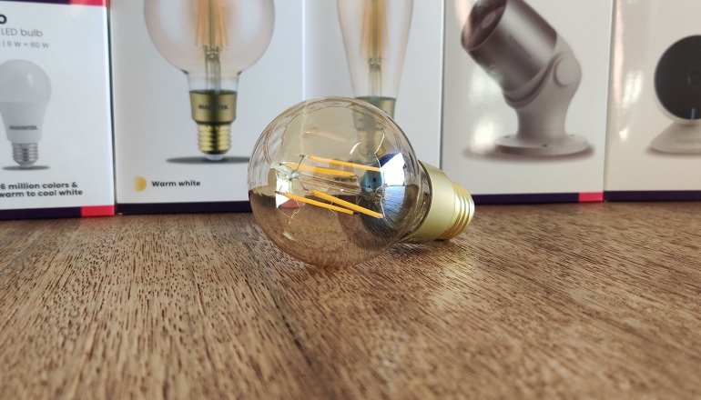 Uniek aan Smart me zijn bijvoorbeeld de filamentlampen. Dit is de oude gloeilamp, maar dan opnieuw uitgevonden. Andere fabrikanten, zoals Innr, hebben ook dergelijke lampen uitgebracht. Die lampen kun je bijvoorbeeld koppelen aan je Philips Hue-bridge, en opnemen in dat netwerk. Omdat de filamentlampen van Marmitek Smart Me direct aan wifi gekoppeld worden, kan dat hier helaas niet. Uiteraard werken ze wel volledig met je Smart Me-netwerk, waardoor er toch veel mogelijkheden zijn als we kijken naar de software.