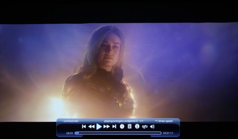 De ingebouwde mediaspeler ondersteunt erg veel formaten, maar liet af en toe toch een steek vallen. Zo speelde hij wel Divx, maar geen Xvid (al stond die wel in de lijst ondersteunde formaten) en kan je geen DTS-soundtracks spelen. We konden geen ondertitels selecteren. HDR-bestanden waren wel mogelijk. Een keer weigerde de speler plots alle bestanden, en moesten we de projector herstarten. Kortom, ondanks de ingebouwde mogelijkheden ben je beter af met een goede externe mediaspeler die ook een degelijk app-platform bevat.