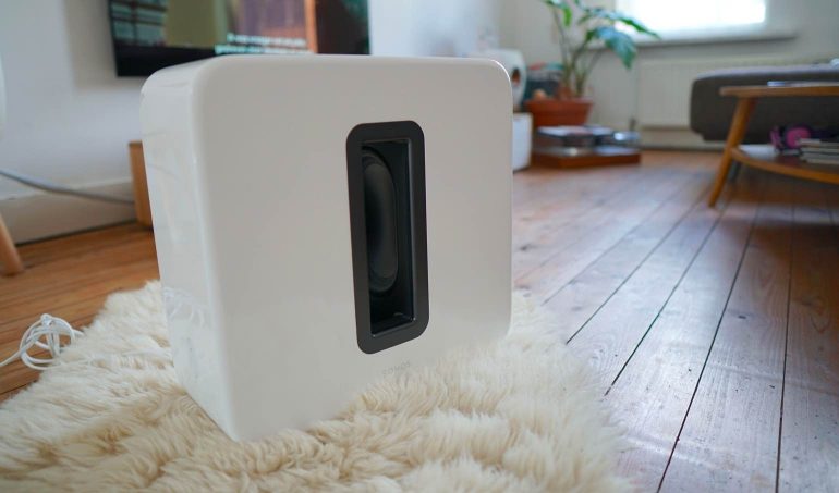 We ontvangen voor deze test eveneens een nieuwe Sonos Sub, in een fraaie witte kleur. Dat past mooi in ons interieur met witte muren en lichthouten vloer. De Sonos Sub is nu ook vernieuwd, maar zo ver we kunnen bepalen is er niets fundamenteel veranderd. Het blijft een dubbeldriver-ontwerp met een uitsparing in het midden waar de twee luidsprekers op elkaar gericht zijn. Een apart design is het, niet vergelijkbaar met de meeste subwoofers. Voor wie er aan mocht twijfelen: dit is een gespecialiseerd Sonos-toestel. Je kunt het niet gebruiken met andere surroundapparatuur van andere merken.