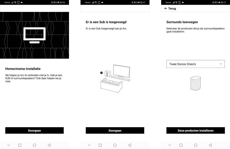 Het toevoegen van surroundspeakers of Sonos Sub kan altijd achteraf. Maar net na tijdens het instellen van de Arc krijg je de vraag of je extra onderdelen wilt toevoegen (Homecinema-installatie), dus als je alle toestellen meteen in huis haalde kun je het in één keer regelen. Voeg je pas later een Sub toe, dan krijg je sowieso bij het instellen van dat toestel de vraag bij welke toestellen het hoort. De Sub moet je immers altijd met iets anders combineren.