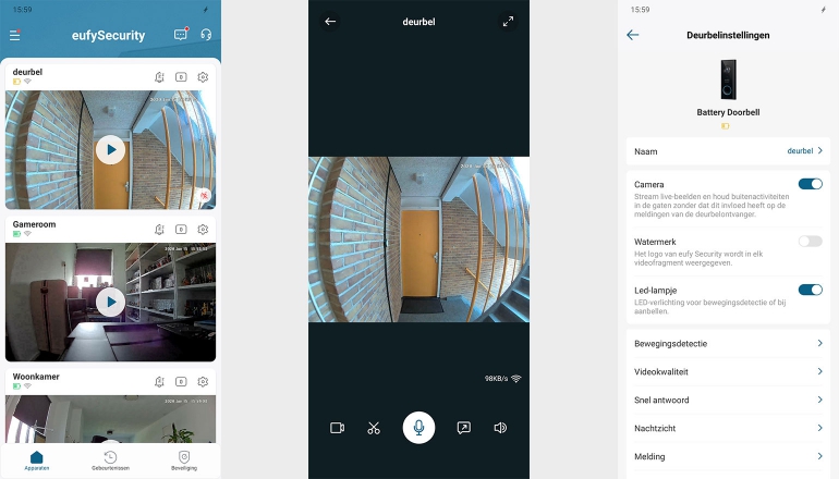 Qua smarthome-integraties hoef je niet heel veel te verwachten. Er is een stabiele koppeling met HomeKit van Apple, maar de integraties met Amazon Alexa en Google Assistent laten nog wat te wensen over. We zijn tegen verschillende problemen aangelopen. Het Eufy-account koppelen lukt nog wel, maar vervolgens krijgen we de beelden niet te zien op een smart display, zoals de Nest Hub wanneer we daarom vragen. Handmatig de beelden opvragen door dat via het touchscreen te regelen, werkt dan weer wel.
