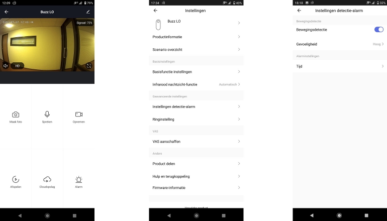 Zodra er aangebeld wordt (of de bewegingsdetectie ziet een beweging), dan krijg je een notificatie op je smartphone. Klik je hierop, dan word je naar de liveweergave gebracht en kun je zien wie er voor je deur staat en hier eventueel mee spreken. Het geluid is zowel op de smartphone als via de Buzz LO videodeurbel goed te horen, dus over de geluidskwaliteit valt weinig te klagen. Datzelfde geldt ook voor het beeld. De 1080p-weergave voldoet uitstekend, maar andere videodeurbellen beschikken vaak over een grotere beeldhoek. De hoek in de breedte is prima, maar in de lengte hadden we graag iets meer gezien op het beeld. Hang de videodeurbel dus niet te hoog, want dan kun je nog wel eens een kind missen die voor je deur staat.