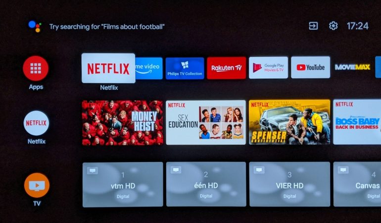 De interface van Android 9 (Pie) organiseert alle content in kanalen die horizontale rijen innemen op het scherm. Deze kanalen kan je zelf aanpassen of verwijderen. Voor een volledig overzicht van de mogelijkheden Android TV 9 verwijzen we je naar ons Android TV 9 achtergrondartikel.