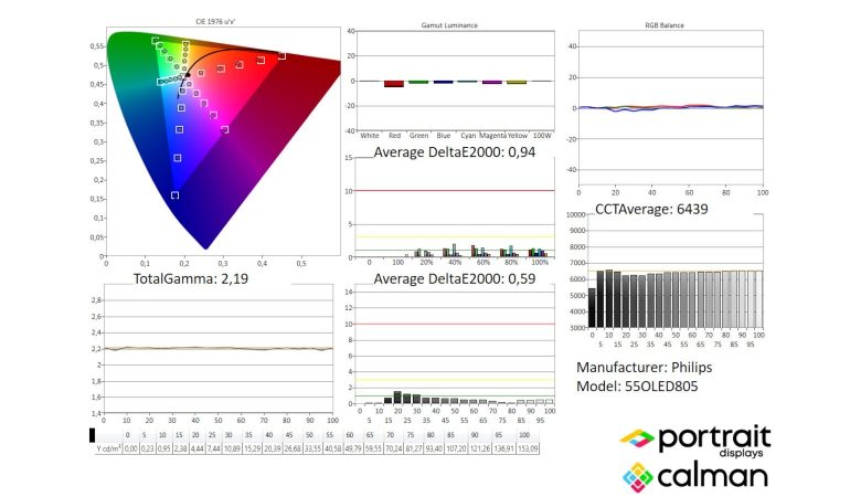 Het kleurbereik van de 55OLED805 zit op 91% DCI-P3 en 65% Rec2020. Dat is iets lager dan vorig jaar, en ook iets lager dan de andere OLED-concurrenten die we al testten. Het blijft uiteraard ruim voldoende voor een indrukwekkend HDR-beeld.