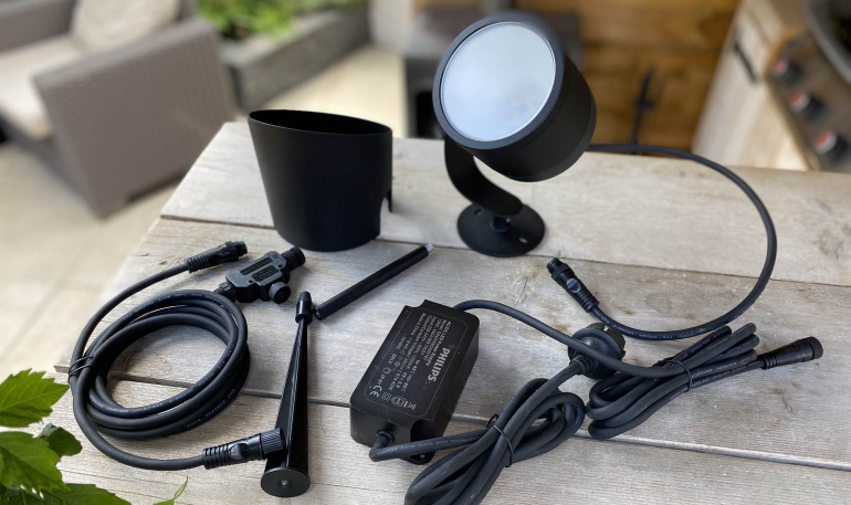 Heb je geen Hue-tuinverlichting of heb je het maximale aantal lampen per adapter al gebruikt? Dan heb je dus nog een losse adapter van zo’n 40 euro nodig, waar je maximaal twee Lily XL-spots op kunt aansluiten. Binnenkort lanceert Signify ook een 100 Watt adapter waar je veel meer lampen op kwijt kunt. Deze zal zo’n 70 euro kosten.