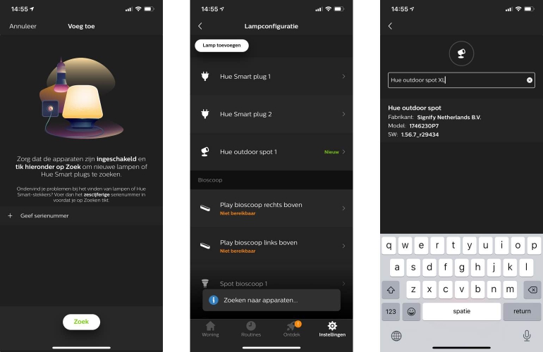 Net als bij alle andere Hue-lampen vindt de bediening van de Lily XL-spots plaats in de Hue-app. Als je al Hue-lampen in huis hebt dan is het een kwestie van de nieuwe lampen toevoegen aan de Hue-app en je kunt aan de slag. Heb je de app nog niet dan is het een kwestie van downloaden, een account aanmaken, de Bridge instellen/koppelen en de Lily-lamp koppelen. Als de spot aangesloten is op het stopcontact – en dus aanstaat – dan kun je hem automatisch vinden in de app. Dit doe je onder het kopje Instellingen en vervolgens Lampconfiguratie. Hier kun je de lamp direct ook een naam meegeven. Vervolgens ga je naar Kamerconfiguratie, maak je de ‘Tuin’ aan (of kies je deze) en zet je hier de Lily XL-spot in. Dit maakt het eenvoudig om de gehele tuin aan of uit te zetten, of alle lampen in een scene te laten deelnemen.