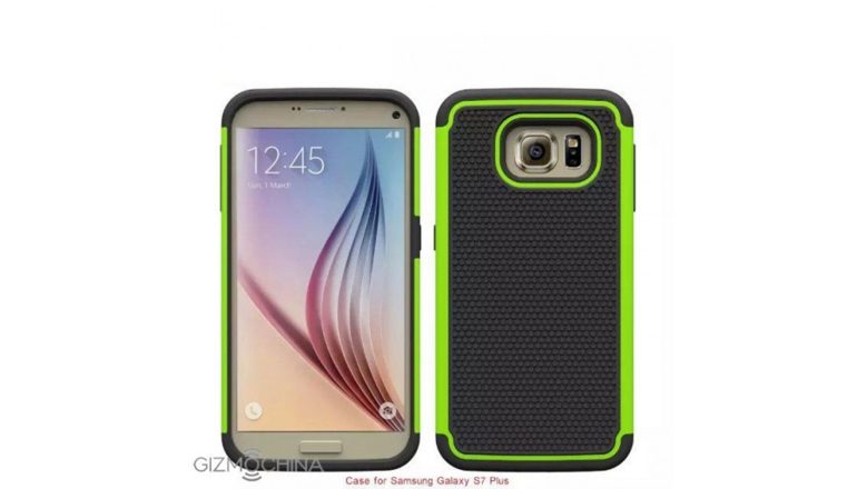 De hoesjes van zowel de Galaxy S7 als de Galaxy S7 Plus (plaatje hieronder) zijn te zien, met de toestellen erin. Wat niet te zien is, zijn de Edge-varianten van de Galaxy S7.