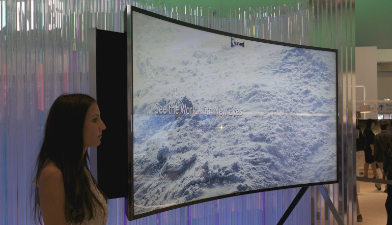 IFA 2014 staat in het teken van de gebogen tv’s met hoge resolutie display maar Samsung gaat nog een stap verder. De Koreaanse fabrikant heeft namelijk een tv aan het publiek getoond die middels een knop op de afstandsbediening gebogen kan worden. Nee, het prototypemodel dat getoond werd deed alles volautomatisch maar het idee was duidelijk.