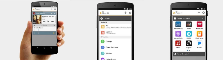 De Play-Fi-app biedt toegang tot alle populaire muziekstreamingdiensten, waaronder Spotify, Pandora, Tidal, Deezer, Napster en ook internet radiostations. Muziek die op je computer of mobiele apparaat staat kan ook direct naar compatibele speakers of audiosystemen gestreamd worden. Het streamen middels de app is zeer eenvoudig; je selecteert de speakers, zones of audiosystemen die gekoppeld zijn en je speelt de gekozen muziek direct af.