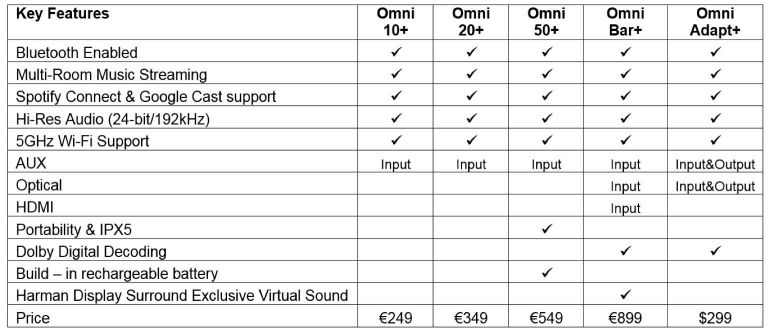 De Harman Kardon Omni 10+, Omni 20+ and Omni 50+ zijn in de herfst van 2016 beschikbaar. De Omni Bar+ en Omni Adapt+ zijn beschikbaar vanaf de lente van 2017.