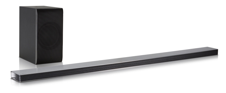 Een stapje lager zien we de SJ8 met subwoofer terug. Dit is een soundbar met een 4.1-kanaals luidsprekersysteem. Het systeem heeft een vermogen van 300 Watt en moet perfect passen bij diverse tv’s van LG. De speakers kunnen exact over de standaard van verschillende LG tv’s geschoven worden en voor de C7V en B7V oled tv’s geldt dat er een speciale beugel komt die doet lijken of de speakers de standaard van de tv zijn. Qua features komt het grotendeels overeen met de SJ9 soundbar, minus Dolby Atmos.