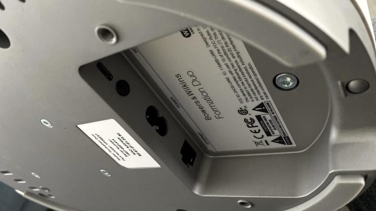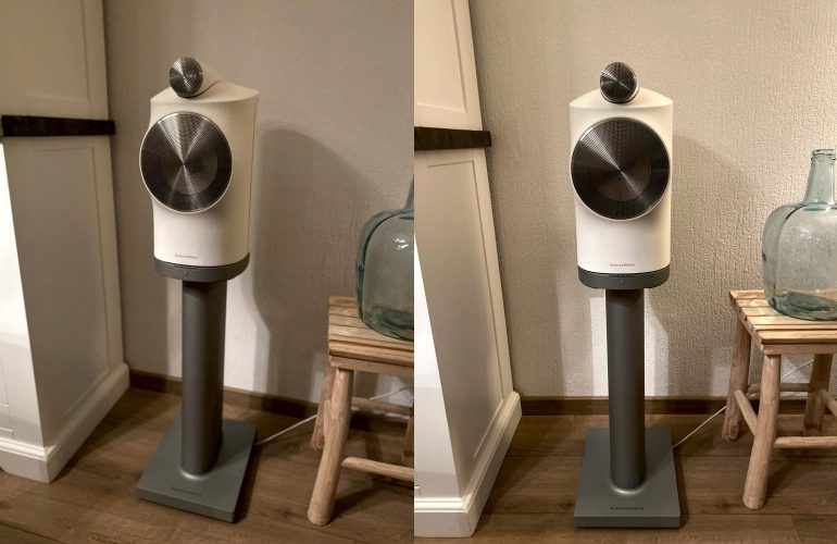 Overigens is het qua plaatsing nog wel even goed om te vermelden dat Bowers & Wilkins niet voor een master/slave-oplossing gekozen heeft. Er zit dus geen kabel tussen de twee speakers. Beiden communiceren draadloos met elkaar en moeten alleen met een stopcontact verbonden worden. De standaarden zijn optioneel want je kunt de Duo’s ook gewoon op een dressoir of andere kast plaatsen. Mocht je voor de standaarden kiezen dan is het goed om te weten dat deze met spikes en rubberen voetjes komen, en dat je de kabels er netjes in weg kunt werken.