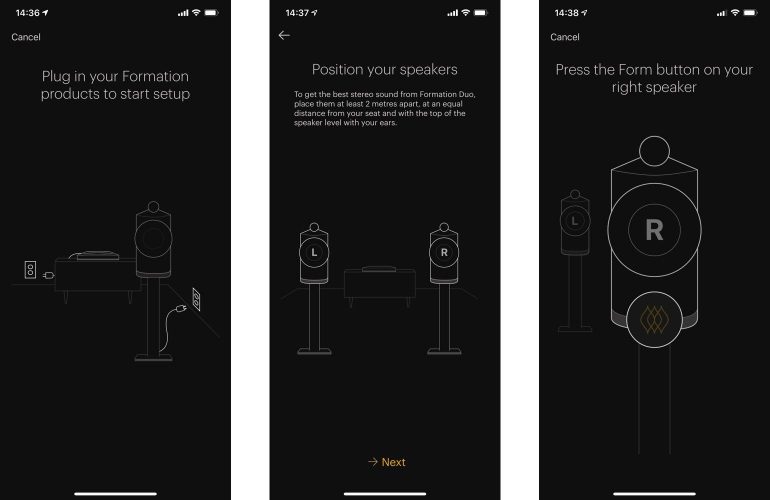 De installatie van de Formation Duo is net als bij de andere Formation-speakers een fluitje van een cent. Je downloadt Bowers & Wilkins Home-app, zet de speakers aan en er wordt direct naar speakers gezocht. Zodra de speaker gevonden is kun je deze koppelen door op de Formation-knop te drukken en vervolgens is het een kwestie van het wachtwoord voor je WiFi-netwerk invoeren, de speakers aan een ruimte toevoegen (of een ruimte aanmaken) en de laatste firmware-update laten downloaden en installeren. Het is een zeer gebruiksvriendelijk proces waar je binnen een paar minuten doorheen loopt. Ook positief is dat je hier geen account voor hoeft aan te maken.