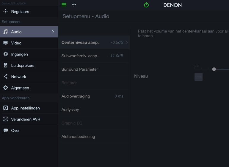 Denon zorgt bij de AVR-X2500H opnieuw voor veel bedieningsmogelijkheden. Uiteraard zit er in de doos een standaard Denon-remote met veel knopjes. Het werkt zoals het hoort en is oerdegelijk gebouwd. Je kunt daarnaast de receiver aansturen via apps. De Denon 2016 AVR Remote heeft een misleidende naam, want het werkt wel perfect met deze receiver uit 2018. De app is bedoeld als een totale vervanger van je afstandsbediening. Buiten dat de app bij het opstarten soms een paar seconden nodig heeft om de receiver te vinden, werkt het prima. Het is geoptimaliseerd voor een tabletscherm, maar toont eveneens duidelijk op een smartphonedisplay. Je krijgt wel veel knopjes aangeboden, wat op een groter scherm toch overzichtelijker verschijnt.