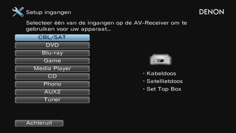 De grote flexibiliteit qua instellen is een groot pluspunt van deze receiver, maar even belangrijk is dat je de vele mogelijkheden eenvoudig ontsluit via de Denon-interface. Denon blijft op dit vlak het voorbeeld voor andere merken. Ook de Nederlandse setup assistant die je via het tv-scherm helpt om de receiver bij ingebruikname in te stellen is zeer gebruiksvriendelijk. Je wordt echt bij de hand genomen; je krijgt zelfs te zien waar welke kabels moeten ingestoken worden. Als je weet wat je doet, hoef je het niet te gebruiken. Maar voor een beginner is het bijzonder behulpzaam.
