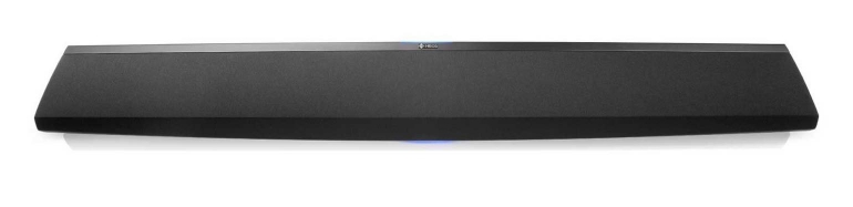 Deze HEOS-soundbar kun je ook aan de muur hangen. De drivers – die je niet ziet vanwege luidsprekerdoek – zijn onder een hoek gemonteerd zodat ze altijd correct geluid uitstralen naar je zitpositie. De grote afmetingen op papier vertalen zich in de praktijk niet naar een groot of log toestel. De HEOS Bar behoudt wel dat meer hoekige design waar Denon van houdt, maar het heeft een lijnenspel dat hem vanuit de bank toch compacter en slanker doet overkomen. Eenzelfde optische illusie ervoeren we recent nog bij de test van de Q Acoustics M3.