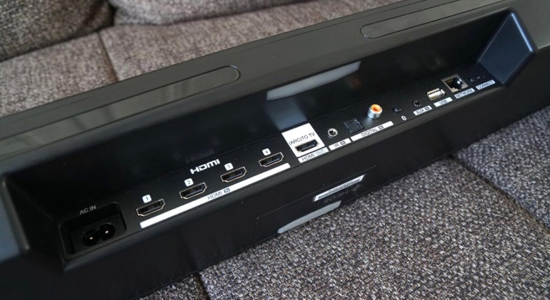 Als het gaat om aansluitingen kan het contrast tussen grote concurrent Sonos Playbar en de HEOS Bar niet groter zijn. Sonos gelooft dat je een tv enkel met een optische kabel moet aansluiten en dat randapparatuur aan het tv-toestel moet hangen. De HEOS Bar heeft wel vier HDMI-ingangen en kan via een HDMI-kabel met de tv gekoppeld worden. Daarnaast zijn er nog er twee digitale ingangen (één coaxiale, één optisch), een USB-poort voor USB-opslag en een analoge aux-ingang. Zelfs zonder de vele HEOS-streamingopties (zie verder) is deze soundbar goed uitgerust. De vele ingangen maken het mogelijk om alle bronnen, zoals consoles en tv-decoders, aan de HEOS Bar aan te sluiten en met slechts één kabel naar je televisie te gaan. Een troef bij muurmontage is dat.