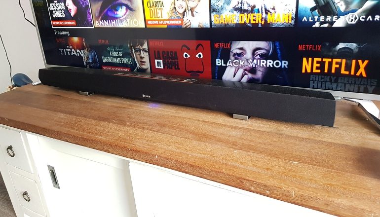 Daar waar de vorige HomeCinema-soundbar van Heos qua hoge tonen niet echt goed uit de verf kwam, merken we dat dat voor dit model wel goed geregeld is. Er is nog steeds een grens aanwezig, maar die wordt alleen opgezocht bij het betere, elektrische gitaarwerk van bijvoorbeeld Muse. Dan nog duurt het even voordat je die grens bereikt hebt. De diepe tonen komen echt ontzettend goed naar voren. Samen met de tonen in het midden ben je zonder meer verzekerd van een kamervullend, rijk en diep geluid waar je u tegen zegt.