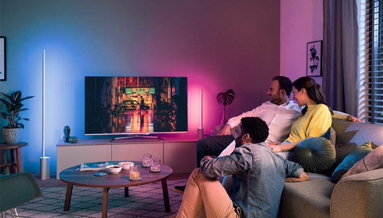 De nieuwe Hue Signe en Hue Play lampen zijn ontwikkeld voor indirect sfeerlicht. Het is dus ook de bedoeling dat de lampen op een muur gericht worden, waarna ze een gekleurde gloed kunnen verzorgen. Als je ze synchroniseert met je Ambilight-televisie of pc kun je op deze manier een Ambilight-effect creëren. Voor koppeling met een pc of laptop is onlangs Hue Sync in het leven geroepen.
