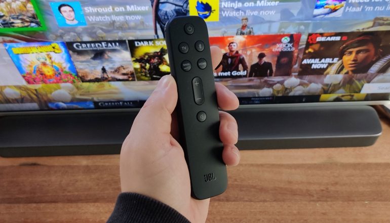 De meegeleverde afstandsbediening vinden we echter een minpunt. Hij is compact, ligt lekker in de hand en zal niet snel in de weg liggen. Er zitten bovendien niet veel knoppen op de accessoire. Een vertegenwoordiger van JBL heeft ons verteld dat bewust voor dit formaat en design gekozen is, zodat de bediening vrij simpel gehouden kan worden. Dat idee snappen we op zich, maar het kan de ervaring wel degelijk in de weg zitten. Zo is helemaal niet duidelijk wat je nou voor extra dingen kunt doen met de soundbar, bovenop de rest van de functies.