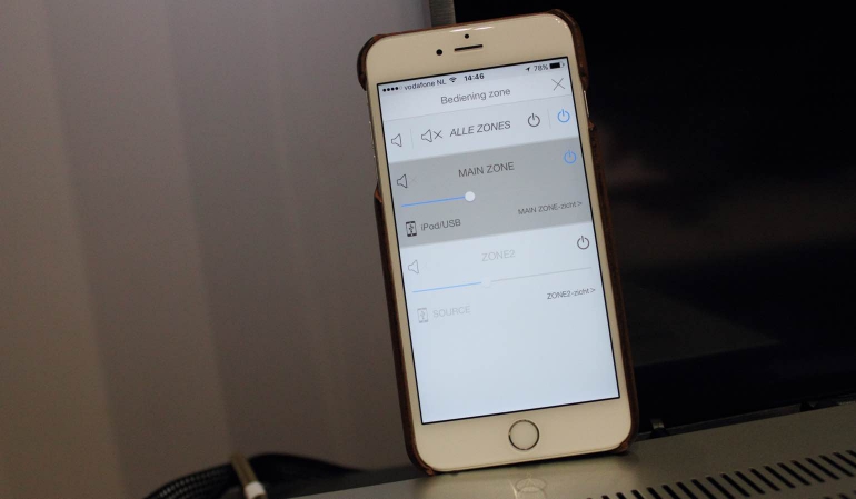 Marantz heeft dit jaar ook een nieuwe Remote-app voor zijn av-receivers uitgebracht. Deze app is beschikbaar voor iOS en Android en kan gratis gedownload worden. De koppeling met de receiver is snel gemaakt en binnen de app kun je eigenlijk alles doen wat je ook met de afstandsbediening kunt. Daarbij krijg je een groot deel van de interface op je smartphone te zien waardoor je niet per se het menu op de tv hoeft te tonen.