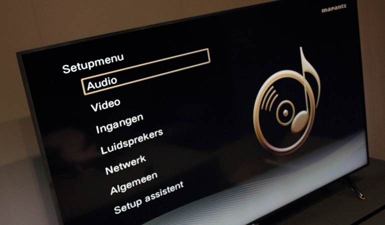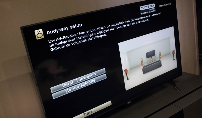 De Marantz NR1607 is voorzien van Audyssey MultEQ. Deze techniek zorgt ervoor dat je de receiver optimaal kunt instellen door de akoestiek van de ruimte te analyseren. Sluit de meegeleverde set-up microfoon aan op de receiver, plaats deze op maximaal zes (luister)posities in de ruimte en laat de receiver het werk doen. Audyssey kijkt onder meer naar de afstanden, geluidsniveaus en de akoestiek van de ruimte. Aan de hand van deze informatie wordt een equalizer afgesteld en worden de afstanden en niveaus bepaald. Als je een ruimte hebt die akoestisch gezien niet optimaal is, en je hebt zelf ook geen zin of kennis om de afstanden en niveaus te gaan meten dan is Audyssey een goede optie. Onze ruimte is qua akoestiek compleet geoptimaliseerd en de afstanden en niveaus van de speakers zijn gemeten dus wij hebben de kalibratie handmatig gedaan. Wil je meer weten over het kalibreren van een receiver, lees dan ons artikel over Audyssey MultEQ.