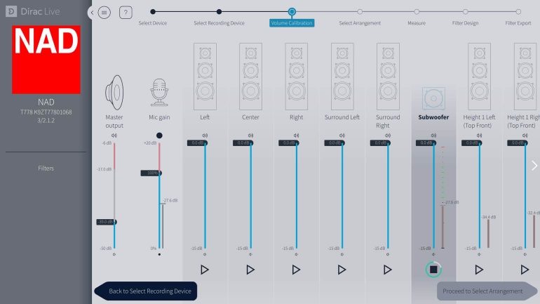 Wees wel gewaarschuwd als je nog nooit een toepassing als Dirac gebruikte. De leercurve is aanzienlijk als je de software echt correct wil toepassen. Het uitdagende zit hem op verschillende vlakken. Het meten vereist aandacht en nauwkeurigheid, want je moet tot op elf plaatsen een meting uitvoeren, om te beginnen. Belangrijk hierbij is dat je elke meting op een gelijke afstand van elkaar uitvoert. Je doet het ook best met een echte meetmicrofoon (zoals de 80-euro kostende UMIK-1) en via je laptop, al levert NAD ook een microfoontje mee in de doos.
