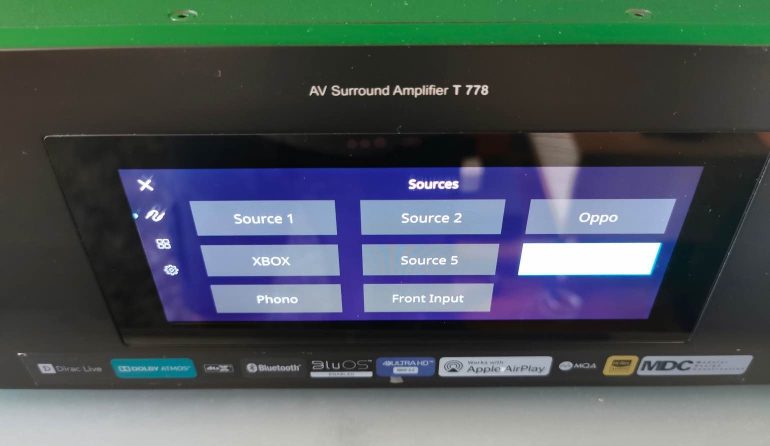 De menu’s waarin je de vele variabelen die horen bij een AV-receiver aanpast zijn bij de T 778 heel helder gepresenteerd. Verkies je de instellingen aan te passen via het aanraakscherm, dan toont de interface op dit display. Dat is soms wel heel handig, bijvoorbeeld als je de naam van een bron wil hernoemen. ‘Source 1’ veranderen in ‘Oppo UDP-203’ gaat in een wip via het virtuele toetsenbord.