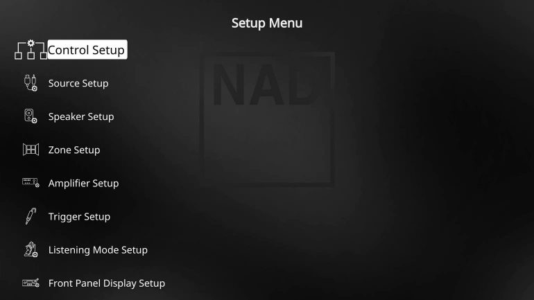 We zijn echter ook blij dat je via de afstandsbediening kunt werken. In dat geval tonen de menu’s op het tv-scherm. En zowaar: de interface presenteert prima op een 4K-tv. Het is een oude klacht van ons dat de meeste AV-receivers nog menu’s in zo’n lage resolutie doorsturen dat je pixels kunt tellen op je UHD-televisie, dus het is wel positief dat NAD het anders doet. Op zich is de interface gewoon in Full HD, maar hij is duidelijk wel ontworpen om goed te schalen naar 4K. Op een 65-inch Sony OLED-tv zag het er op drie meter afstand puik uit. Een detail, maar wel een belangrijke voor het gebruiksgenot.